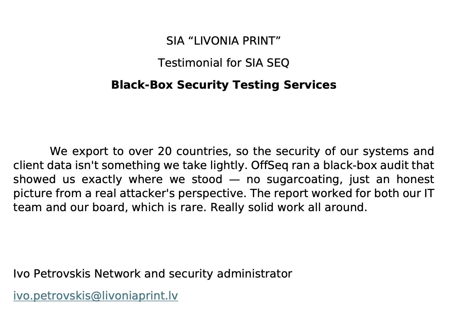 In Eleving Group security resilience is at the core of what we do across 17 markets and more than 1.8M customers. Partnering with OffSeq on a red team engagement gave us a genuine adversarial perspective that went well beyond a traditional penetration test.